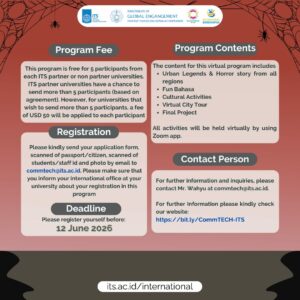 This program is free for 5 participants from ITS partner or non partner universities. ITS partner universities have a chance to send more than 5 participants (based on agreement). However for university that wish to send more than 5 participants, a fee of USD 50 will be applied to each participant