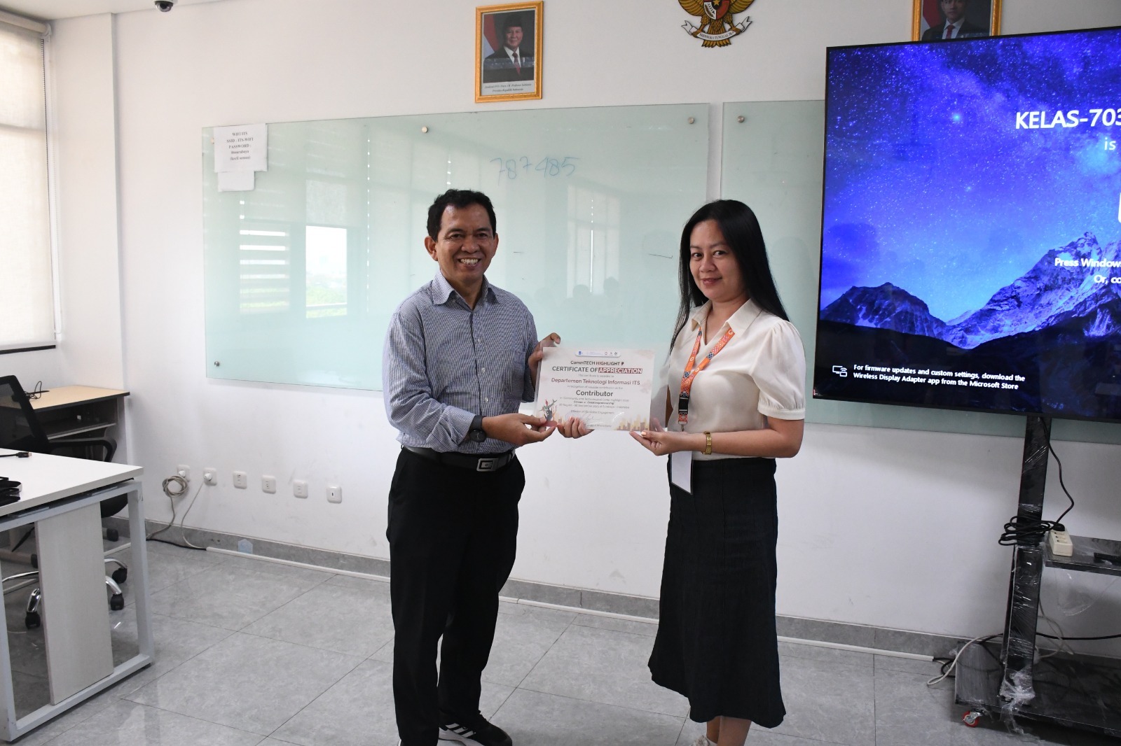 Documentation of ITS DTI student representatives together with Mr. Irzal Ahmad Sabilla, S.Kom., M.Kom. (Supervising Lecturer) and representatives from
