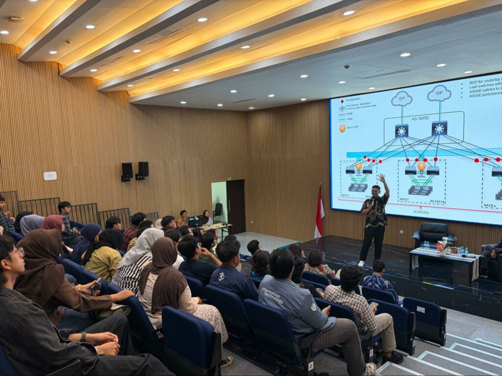 Surabaya, IT Journalistic — The Department of Information Technology at Institut Teknologi Sepuluh Nopember (ITS) held a guest lecture titled “Cloud Transformation in Real Industry: Architecture, Security, and Cost Optimization in Practice” on Friday (April 17) at the 2nd Floor Auditorium, Tower 2 Building ITS. This activity was part of the Cloud Computing Technology (TKA) course, bringing in an industry practitioner directly.