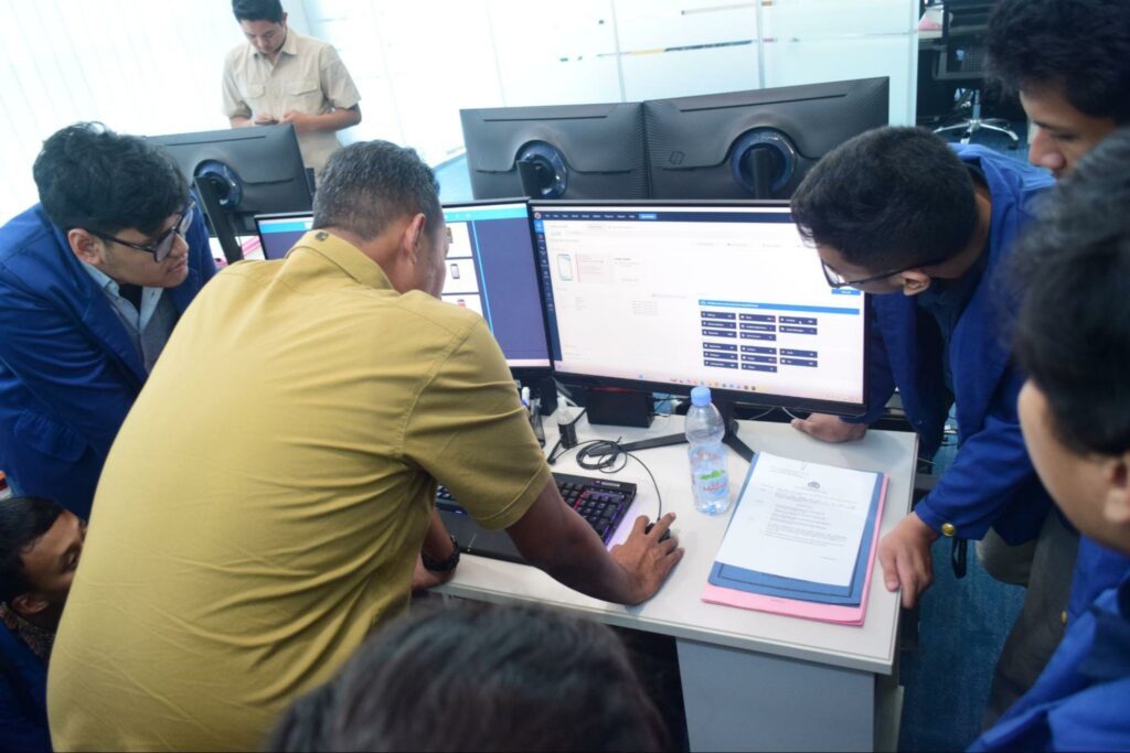 Mahasiswa DTI ITS mengamati demonstrasi langsung proses pemeriksaan digital forensik oleh petugas Labfor Polda Jatim, memberikan wawasan nyata terkait tantangan teknis di lapangan.