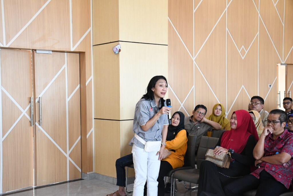 Mahasiswi Departemen Teknologi Informasi ITS saat menerima penghargaan Generasi Muda Terbaik Kabupaten Nganjuk 2025 dalam seremoni penyerahan beasiswa prestasi.