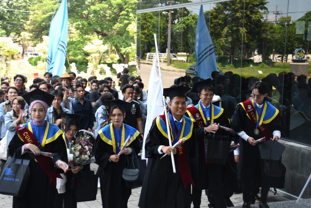 Bu Henning, salah satu dosen pembimbing, mengaku takjub dengan kreativitas panitia wisuda dan semangat mahasiswa dalam menyelesaikan tugas akhir. “Mereka selalu semangat bimbingan setiap minggu, cepat revisi, dan nggak ragu nyari saya di mana pun,” ungkapnya sambil tertawa. Bu Henning juga berpesan agar para wisudawan jujur, bekerja keras, dan kelak kembali ke ITS untuk berbagi ilmu dengan adik-adik kelasnya.