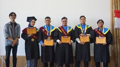 Selanjutnya, dilakukan acara simbolis potong tumpeng kepada perwakilan wisudawan oleh Kepala Departemenm, serta pemberian sertifikat kepada wisudawan dengan predikat Cumlaude.