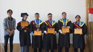 Foto bersama para mahasiswa penerima penghargaan DTI Awards 2026 bersama Wakil Dekan FTEIC dan sivitas akademika Surabaya, IT Journalistic
