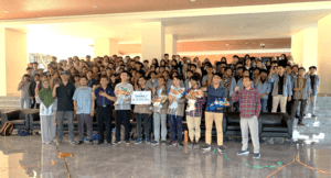 Foto bersama para mahasiswa penerima penghargaan DTI Awards 2026 bersama Wakil Dekan FTEIC dan sivitas akademika Surabaya, IT Journalistic
