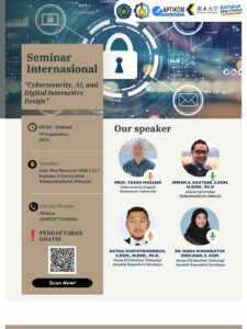 Departemen Teknologi Informasi ITS, bekerjasama dengan Aptikom Jawa Timur dan UMSIDA, menyelenggarakan Seminar Internasional pada tanggal 19 September 2023, dengan topik: Cybersecurity, AI, dan Digital Interactive Design.