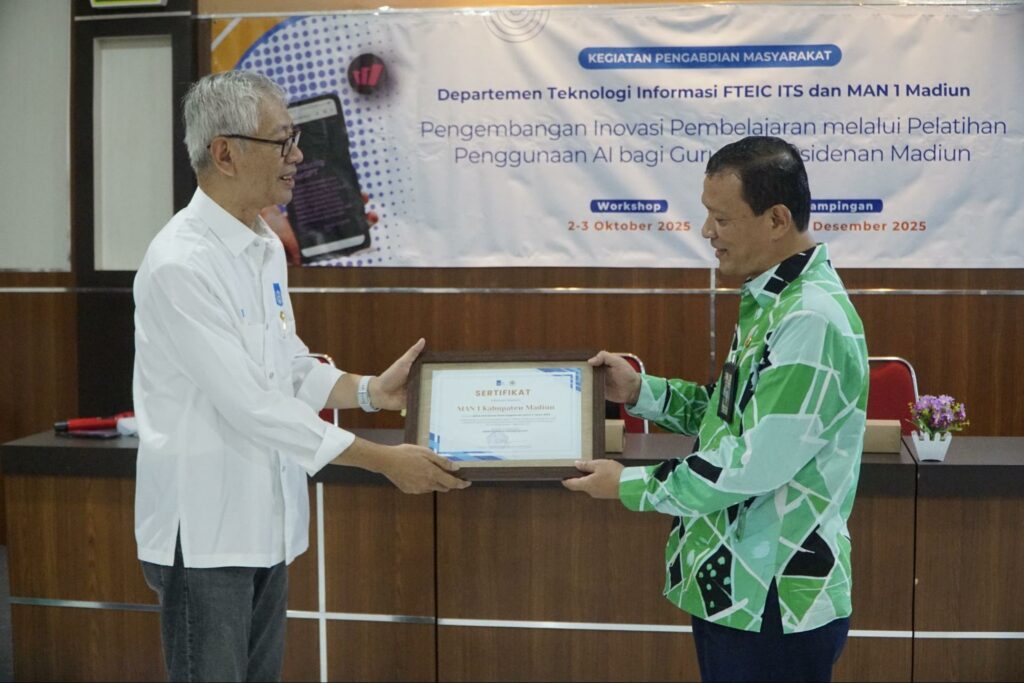 Madiun, IT Journalistic — The Department of Information Technology, Faculty of Electrical and Intelligent Informatics Technology (FTEIC) at Sepuluh Nopember Institute of Technology (ITS), has once again demonstrated its tangible contribution to community service (Abmas). This time, ITS organized a training on the utilization of Artificial Intelligence (AI) for teachers at MAN 1 Madiun on Thursday (2/10).