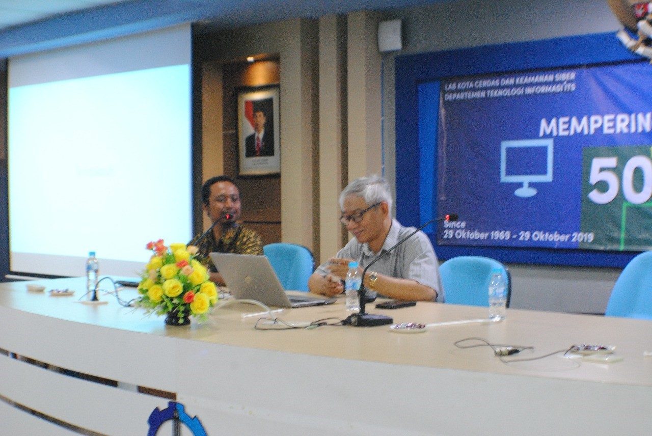 Selama 50 tahun, internet telah berkembang sangat pesat memberikan berbagai pengaruh positif dan pengaruh negatif dalam kehidupan masyarakat di dunia. Oleh karena itu, Departemen Teknologi Informasi ITS menyelenggarakan Seminar Ulang Tahun Internet Ke-50 pada hari Selasa, 29 Oktober 2019 di Ruang Seminar Lantai 2, Perpustakaan ITS. Seminar Ulang Tahun Internet Ke-50 ini menghadirkan 5 pembicara hebat dan profesional antara lain Ir, M. Husni M. Kom, Prof. Ir. Supeno Djanali, M.Sc,Ph.D, Dwi Sunaryono, S.Kom, M.Kom, Dr. Ir. Endroyono, DEA, Dr. Ir. Hari Ginardi, M.Sc. Kelima pembicara ini membawakan lima materi yang berbeda-beda dan sangat menarik untuk menjadi pengetahuan baru bagi para peserta seminar. Prof. Ir. Supeno Djanali, M.Sc, Ph.D, pendiri Departemen Teknik Informartika ITS, menyampaikan materi pertama dengan judul “Pengaruh Internet pada Perubahan Kultur di Indonesia” yang menyadarkan kepada kita bahwa internet berkembang dengan membawa berbagai pengaruh positif dan negatif pada budaya di Indonesia. Materi kedua disampaikan oleh Ir. M. Husni, M.Kom, , dengan judul “Sejarah Internet dan Pedoman Keamanan Siber untuk Pengguna Internet”. Materi kedua ini mengingatkan kepada kita sebagai pengguna internet bahwa internet merupakan salah satu ladang penyalahgunaan teknologi informasi dan komunikasi sehingga kita perlu mengetahui keamanan dunia melalui keamanan siber. Materi dilanjutkan dengan penyampaian materi ketiga berjudul “Keamanan Aplikasi” oleh Dwi Sunaryono, S.Kom, M.Kom, menjelaskan kepada kita bahwa penting bagi kita untuk menjaga keamanan suatu aplikasi. Materi pun berlanjut pada materi keempat yang disampaikan oleh Dr. Ir. Endroyono, DEA dengan judul “IoT sebagai Pendukung Smart City” dimana konsep Smart City merupakan suato konsep kota inovatif yang memanfaatkan teknologi informasi dan komunikasi dan teknologi lainnya untuk meningkatkan kualitas hidup, efisiensi dari pelaksanaan dan pelayanan kota serta tingkat kompetitif suatu kota sementara mendukung kebutuhan generasi saat ini dan yang akan datang. Seminar ini ditutup dengan penyampaian materi kelima oleh Dr. Ir. Hari Ginardi, M.Sc dengan judul “Pengaruh Internet pada Pertumbuhan Sistem Informasi Berbasis Jaringan”, menyadarkan kepada kita bahwa internet memiliki pengaruh yang sangat besar terhadap pertumbuhan sistem informasi dengan basis jaringan.
