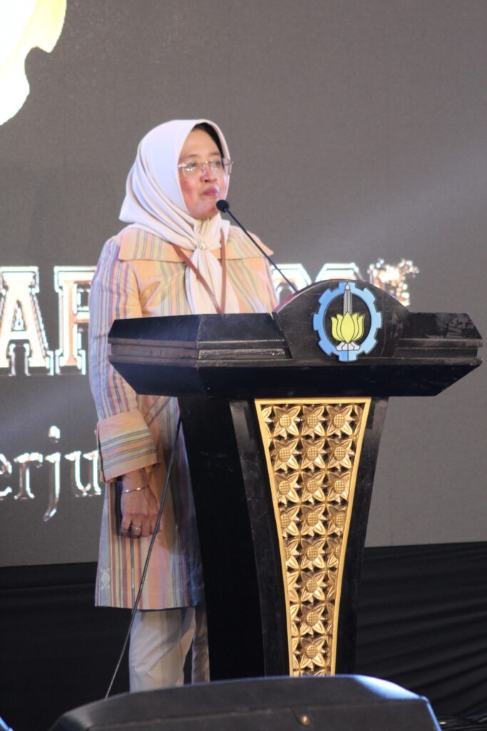 Wakil Rektor I Bidang Akademik dan Kemahasiswaan ITS Prof. Nurul Widiastuti, S.Si., M.Si., Ph.D. menyampaikan sambutan pada Ormawa Awards 2025
