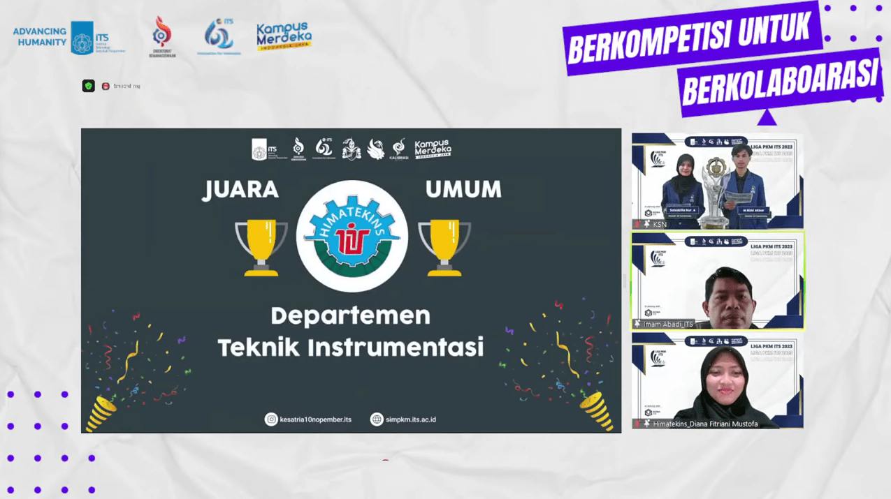 SURABAYA, DITMAWA – Sabtu, 25 Maret 2023 Liga PKM ITS berakhir dengan dinyatakannya Departemen Teknik Instrumentasi ITS sebagai Juara Umum.