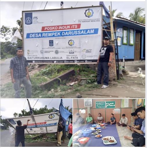 Sejak terjadinya bencana, Institut Teknologi Sepuluh Nopember (ITS) telah membuka Posko Induk dan Dapur Umum bekerjasama dengan berbagai pihak, termasuk BPBD Kabupaten Lombok Utara, Dinas Kesehatan Lombok Utara dan berbagai komunitas, baik nasional maupun lokal. Dengan mempertimbangkan hasil survey dan masukan dari BPBD, Posko Induk ITS didirikan di Desa Rempek Darussalam, Kecamatan Gangga, Kabupaten Lombok Utara, mulai tanggal 8 Agustus 2018 dan masih beroperasi sampai saat ini. Kesulitan akses dan keterbatasan air, listrik, makanan dan terpal menjadi beberapa alasan untuk memilih desa ini. Di Desa ini, terdapat satu posko induk dan 29 posko lain di bawah area kerja Posko Induk ITS dengan total jumlah pengungsi sebanyak 914 KK atau 3238 jiwa.