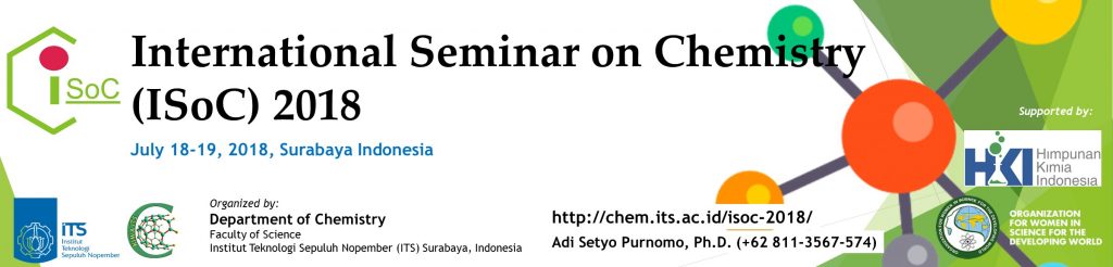 The 3rd International Seminar on Chemistry (ISoC III) will be held on July 18-19, 2018 in Surabaya, Indonesia.
