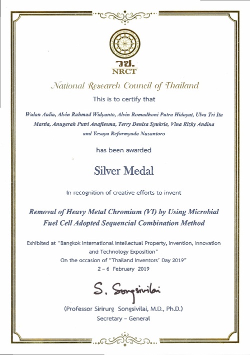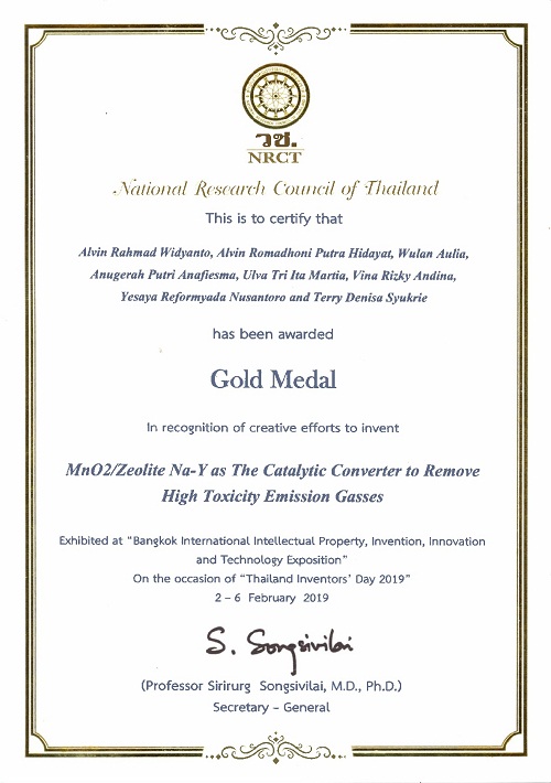 Alhamdulillah, puji syukur hasilnya sangat memuaskan karena mampu menyabet 3 penghargaan di bidang environment yaitu Gold Medal, Silver Medal, dan Special Award dari Asosiasi Inventor Polandia. Merupakan sebuah kebanggaan bagi tim riset karena dapat mengharumkan nama Departemen Kimia serta Indonesia di kancah internasional.