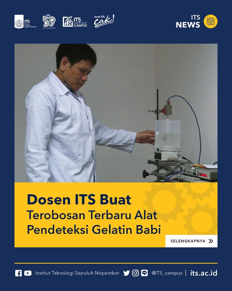 Tak henti-hentinya riset inovatif dilakukan oleh para dosen Institut Teknologi Sepuluh Nopember (ITS) Surabaya sebagai upaya untuk membantu masyarakat secara luas di Indonesia. Kali ini Prof. Dr. rer. nat. Fredy Kurniawan, M.Si, dosen dari Departemen Kimia ITS, bersama rekan-rekannya melakukan penelitian mengenai alat pendeteksi gelatin babi dalam makanan olahan untuk pengendalian produk halal.