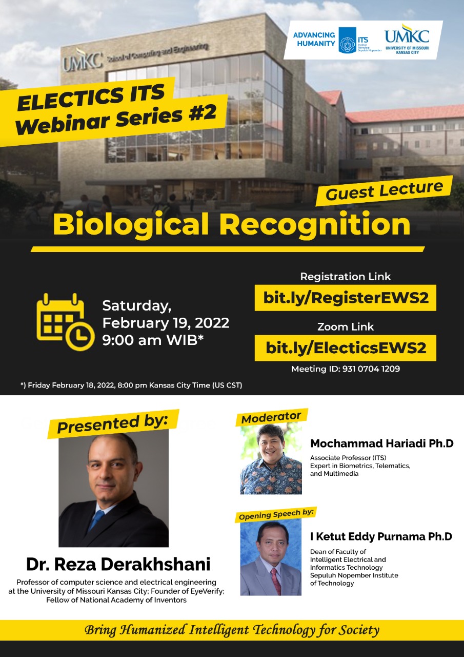 Fakultas Teknologi Elektro dan Informatika Cerdas ITS bekerjasama dengan Departemen Teknik Komputer ITS mengadakan webinar Electics ke 2 pada hari Sabtu, 19 februari 2022 dengan dosen tamu Dr Reza Derakhsani dari Univ Missouri of Kansas City, USA.