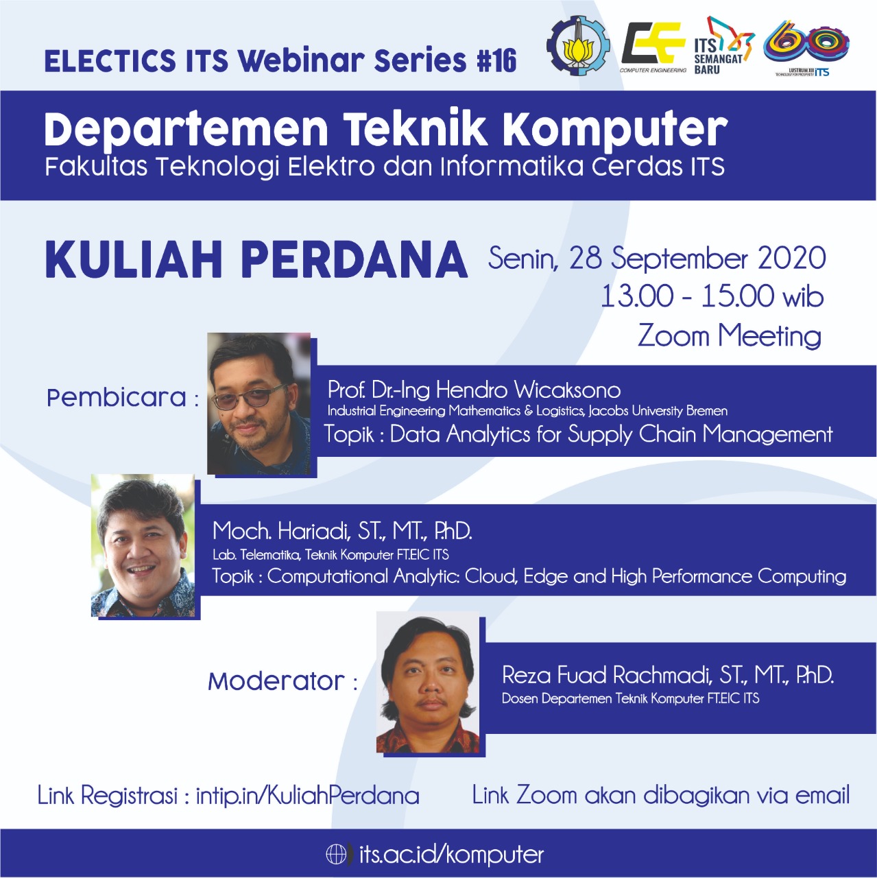 Sebagai pembuka kuliah semester gasal th 2020/2021, Departemen Teknik Komputer, FTEIC ITS, mengadakan webinar kuliah perdana dengan tamu pembicara Professor Dr.Ing Hendro Wicaksono, Professor of Industrial Engineering, Mathematics & Logistics dari Jacobs University Bremen gGmbH. Membawakan materi “Data Analytics for Supply Chain Management”.