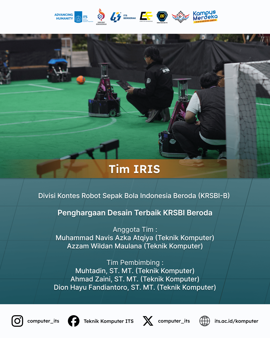 Selamat atas prestasi Mahasiswa dan Dosen Pembimbing Departemen Teknik Komputer ITS yang telah meraih Juara pada Kontes Robot Indonesia 2024 yang diselenggarakan di Universitas Muhammadiyah Surakarta, Jumat (5/7) malam.