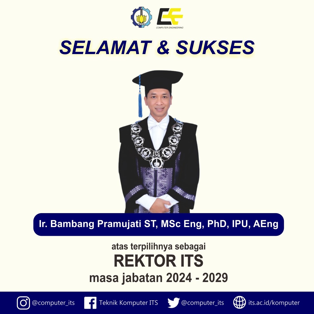 Segenap keluarga besar sivitas akademika Departemen Teknik Komputer ITS mengucapkan selamat dan sukses kepada Ir. Bambang Pramujati, M.Sc.Eng., Ph.D., IPU., A.Eng. @bpramujati sebagai Rektor ITS masa jabatan 2024 – 2029