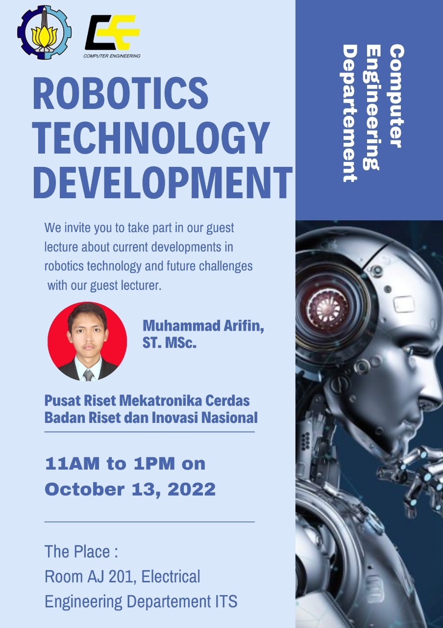 Kuliah Tamu yang diadakan oleh Departemen Teknik Komputer pada hari Kamis, 13 Oktober 2022 dengan tema “Perkembangan Teknologi Robotika saat ini dan tantangan kedepan”.