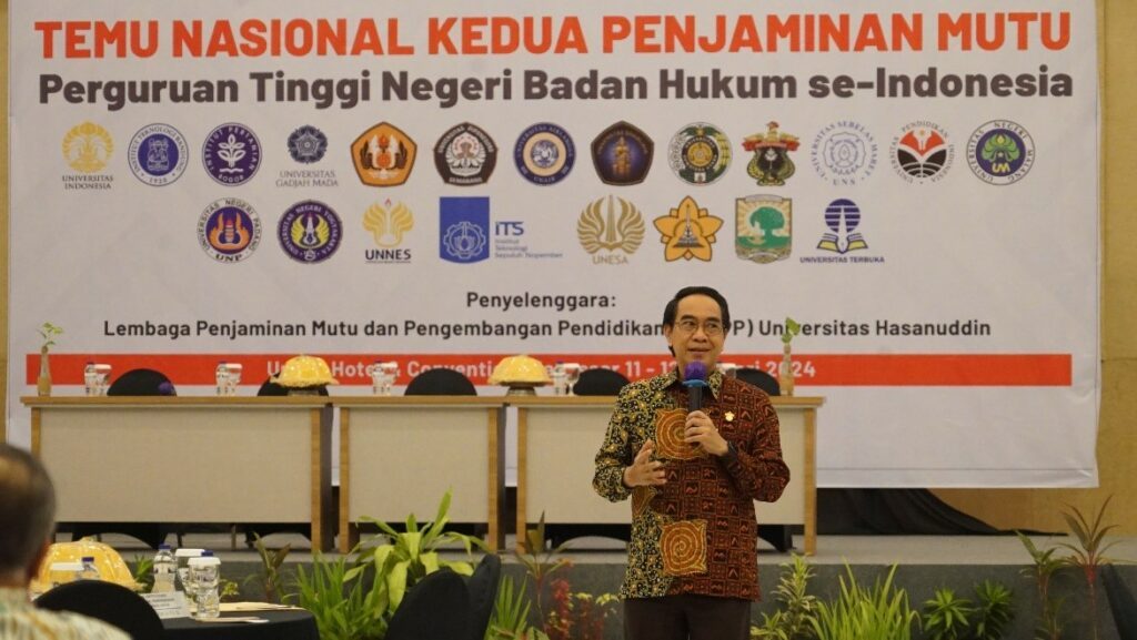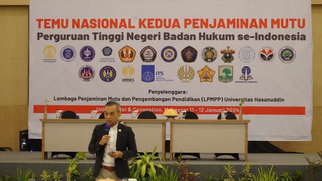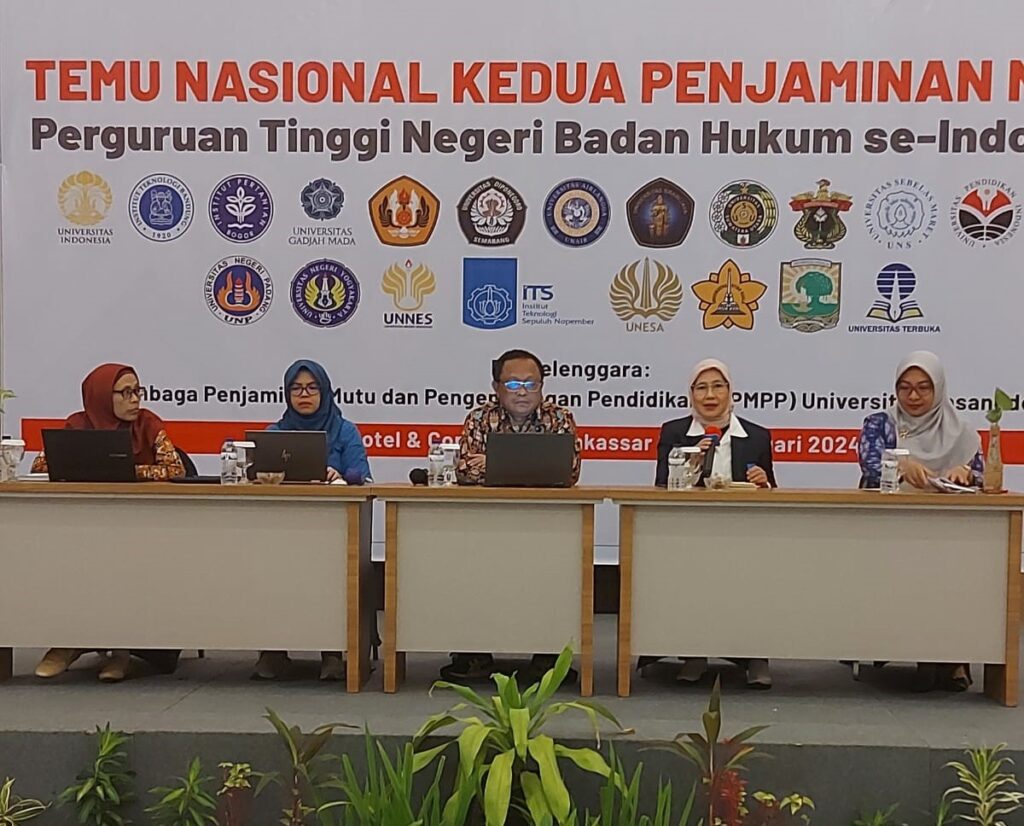 Mengawali tahun 2024, UNHAS melalui Lembaga Penjaminan Mutu dan Pengembangan Pendidikan (LPMPP) didaulat menjadi tuan rumah dalam penyelenggaraan Temu Nasional Kedua Penjaminan Mutu Perguruan Tinggi Negeri Badan Hukum (PTN-BH) seluruh Indonesia. Sebanyak 46 delegasi pengelola penjaminan mutu dari 21 PTN-BH mengikuti secara aktif kegiatan temu nasional ini yang berlangsung selama dua hari, 11-12 Januari 2024 bertempat di UNHAS Hotel and Convention, Makassar.
