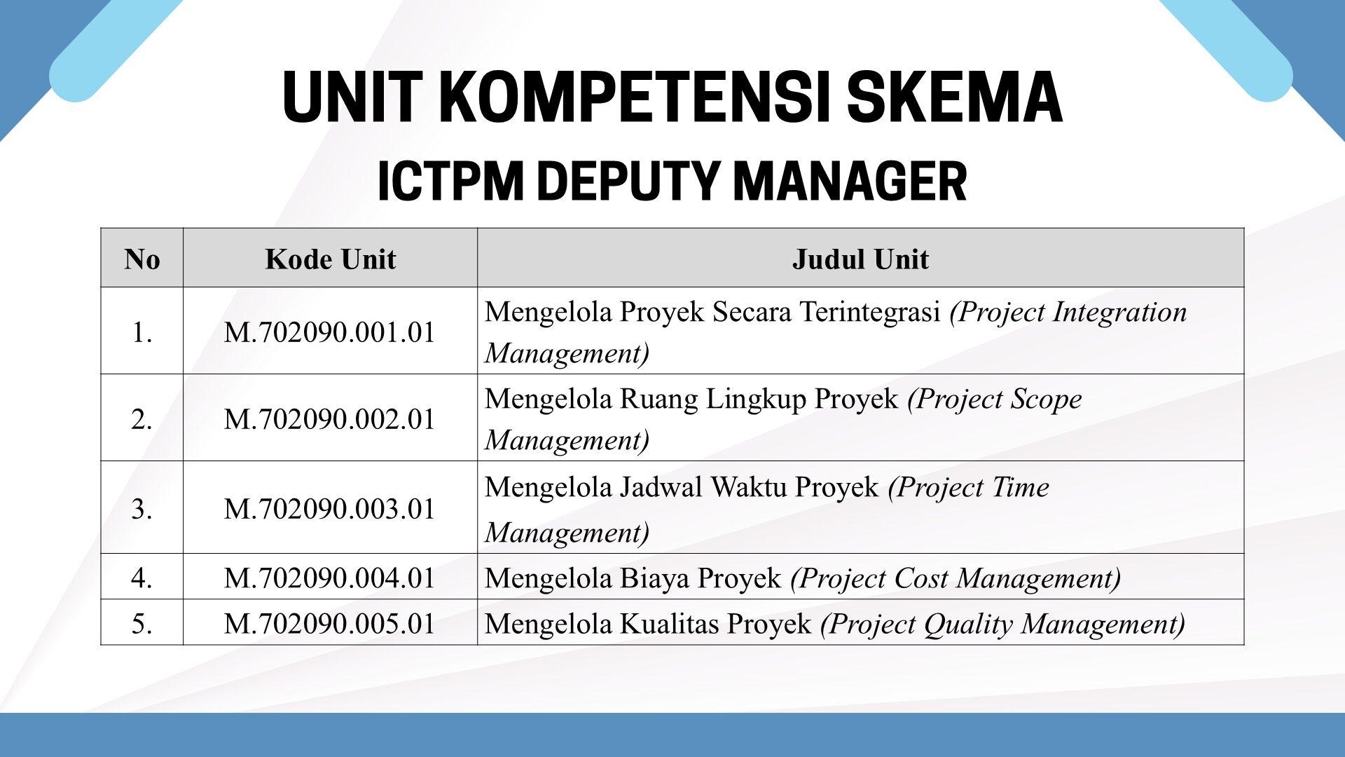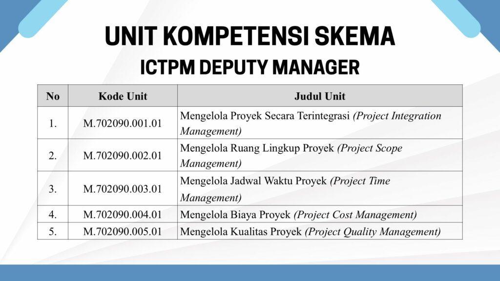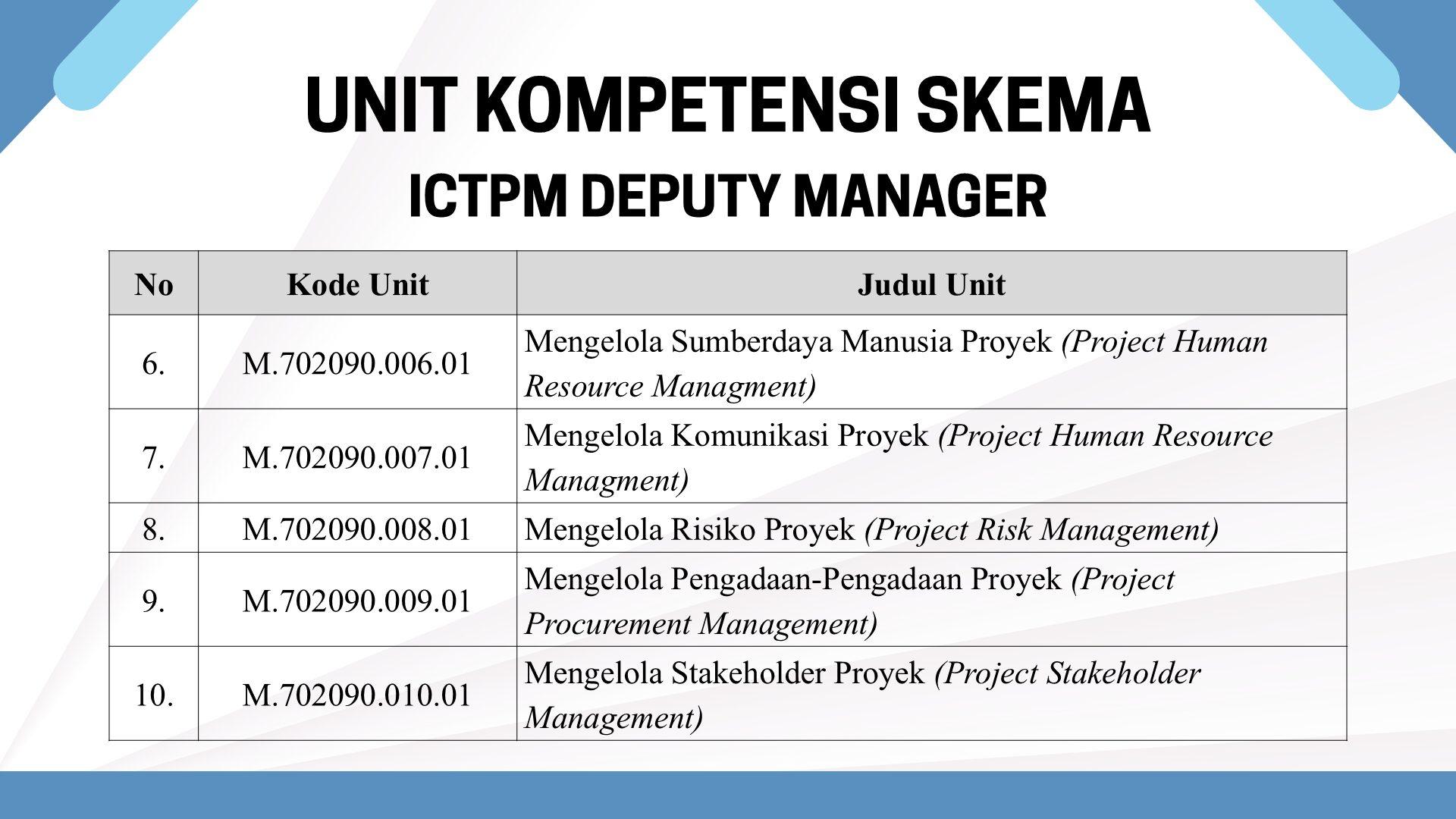 Skema Sertifikasi Okupasi ICTPM Deputy Manager
