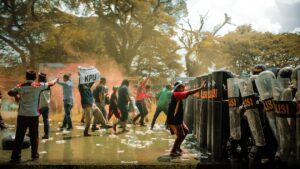 mudahnya dilakukan, baik oleh pihak aparat maupun demonstran. Aksi kekerasan seperti ini tidak boleh kita normalisasi. Kritik terhadap kekuasaan menggunakan cara-cara kasar dan menumpahkan darah sama saja seperti pemberontakan yang dilakukan oleh orang-orang PKI dahulu.