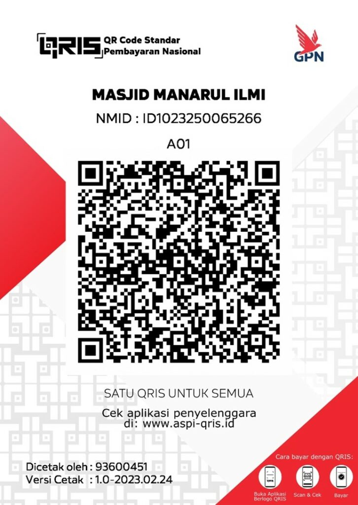 Bagi para jama’ah yang ingin menginfaqkan hartanya untuk kemakmuran Masjid Manarul Ilmi ITS, donasi bisa diaslurkan melalui QRIS berikut ini: