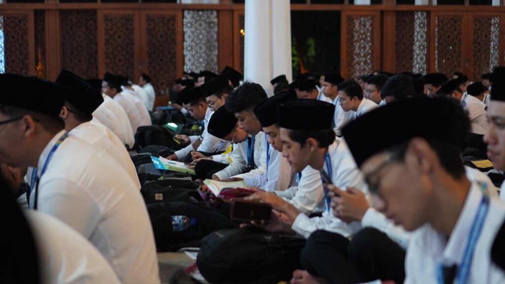 Jama’ah putra mahasiswa baru yang khusyu’ menunggu waktu sholat shubuh (Sumber: dokumentasi panitia)