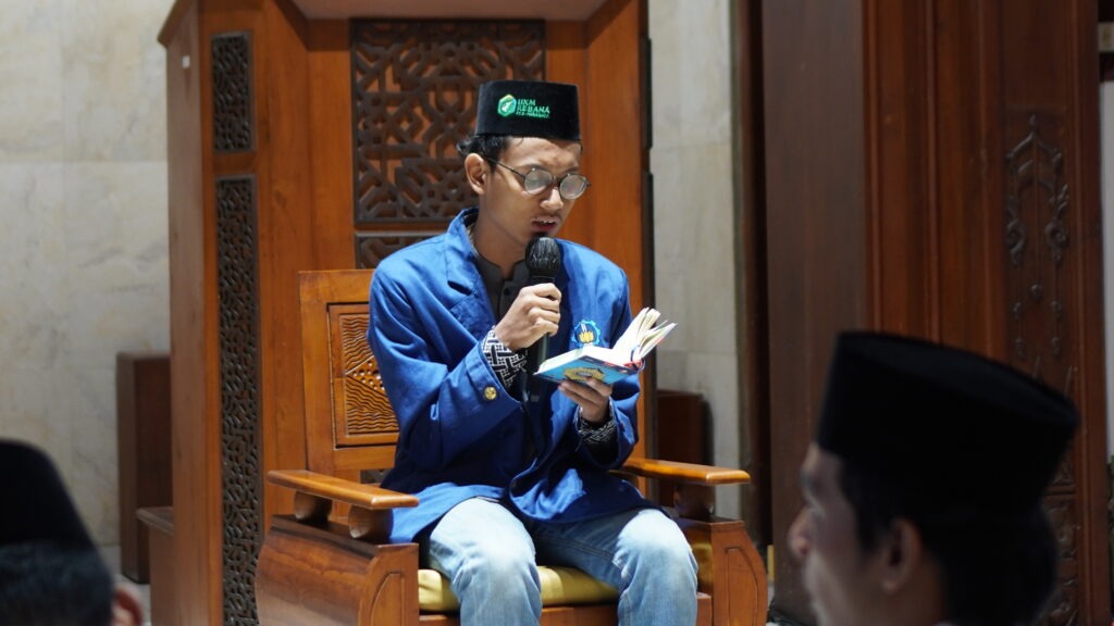 Mahasiswa baru mengikuti membaca surat Al-Waqi’ah bersama-sama (Sumber: dokumentasi panitia)