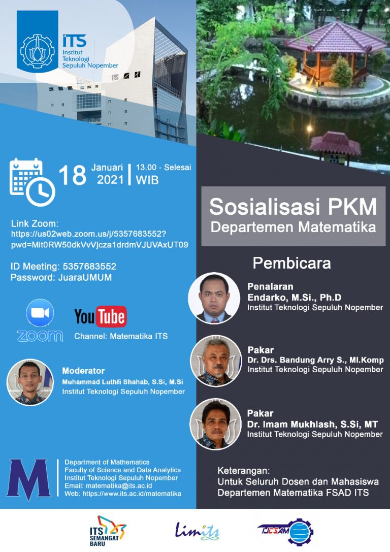 Departemen Matematika akan menyelengarakan kegiatan sosialisasi Program Kreativitas Mahasiswa (PKM) yang akan diselenggarakan pada
