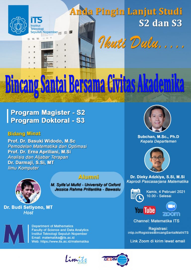 Departemen Matematika ITS akan melaksanakan kegiatan webinar dengan topik “Graf: Efisiensi Dalam Perbedaan”, dengan pemateri