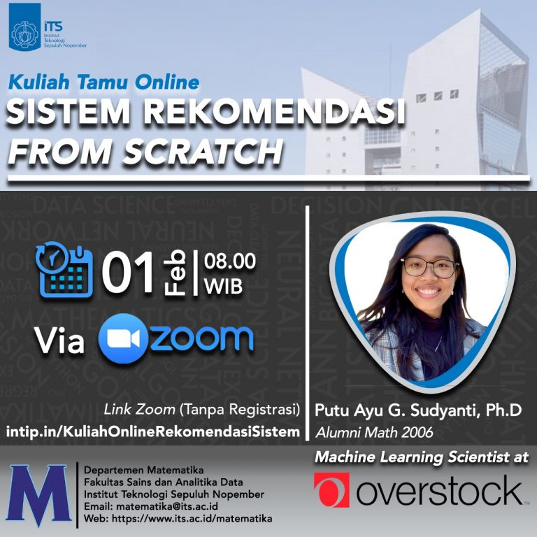 Departemen Matematika ITS melaksanakan kegiatan kuliah tamu online dengan tema “Recommendation Systems from Scratch“,