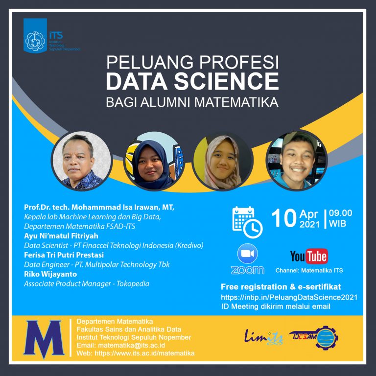 Departemen Matematika ITS menyelenggarakan kegiatan kuliah tamu dengan tema “PELUANG PROFESI DATA SCIENCE BAGI