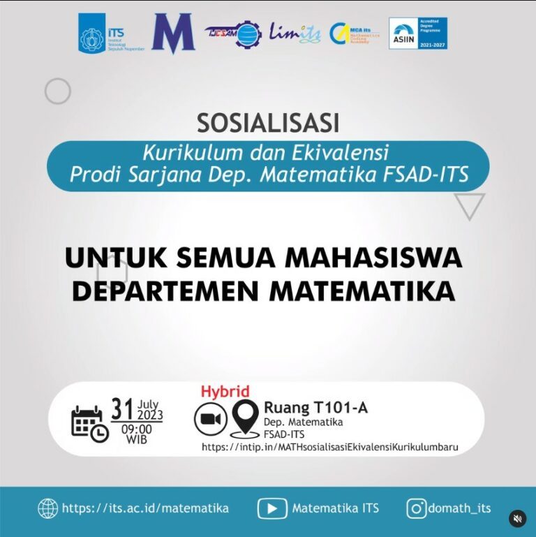 We are pleased to announce that the Department of Mathematics, Institut Teknologi Sepuluh Nopember