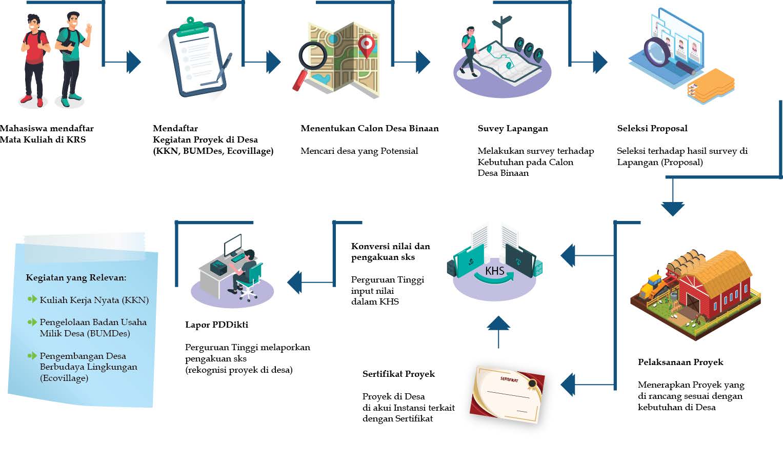 Kuliah Kerja Nyata Tematik (KKNT) merupakan suatu bentuk pendidikan dengan cara memberikan pengalaman belajar kepada mahasiswa untuk hidup di tengah masyarakat di luar kampus, yang secara langsung bersama-sama masyarakat mengidentifikasi potensi dan menangani masalah sehingga diharapkan mampu mengembangkan potensi desa/daerah dan meramu solusi untuk masalah yang ada di desa. Kegiatan KKNT diharapkan dapat mengasah softskill kemitraan, kerjasama tim lintas disiplin/keilmuan (lintas kompetensi), dan leadership mahasiswa dalam mengelola program pembangunan di wilayah perdesaan. Sejauh ini perguruan tinggi sudah menjalankan program KKNT, hanya saja Satuan Kredit Semesternya (SKS) belum bisa atau dapat diakui sesuai dengan program kampus merdeka yang pengakuan kreditnya setara 6 – 12 bulan atau 20 – 40 SKS, dengan pelaksanaannya berdasarkan beberapa model. Diharapkan juga setelah pelaksanaan KKNT, mahasiswa dapat menuliskan hal-hal yang dilakukannya beserta hasilnya dalam bentuk tugas akhir.