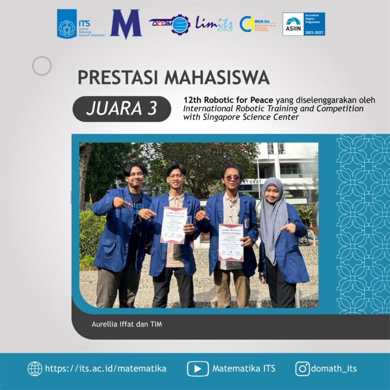 Departemen Matematika ITS mengucapkan selamat kepada Aurellia Iffat dan TIM atas prestasinya Juara 3