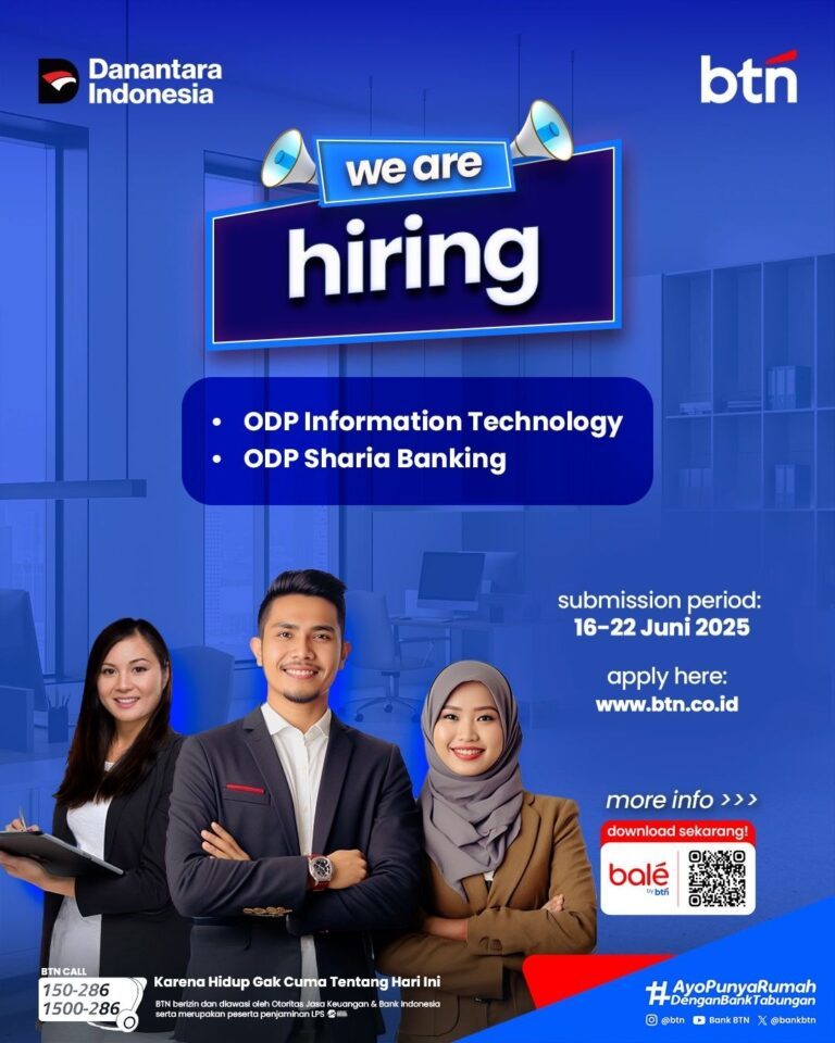 Bank Tabungan Negara (BTN) membuka kesempatan bagi lulusan terbaik untuk bergabung melalui program ODP