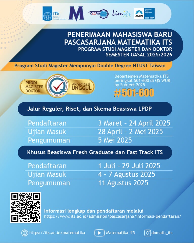 Institut Teknologi Sepuluh Nopember (ITS) membuka kesempatan bagi calon mahasiswa untuk bergabung dalam Program