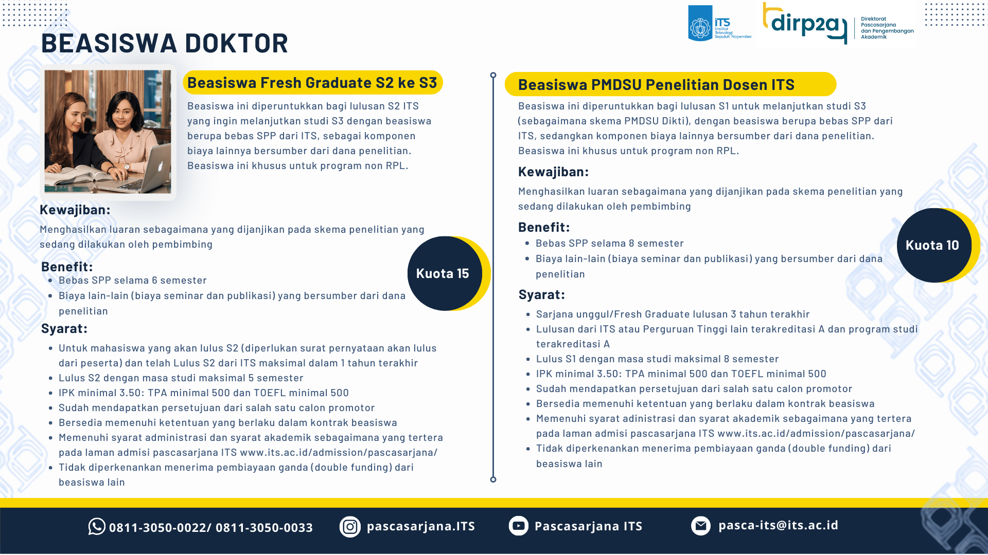 Informasi lebih lanjut: https://www.its.ac.id/admission/pascasarjana/