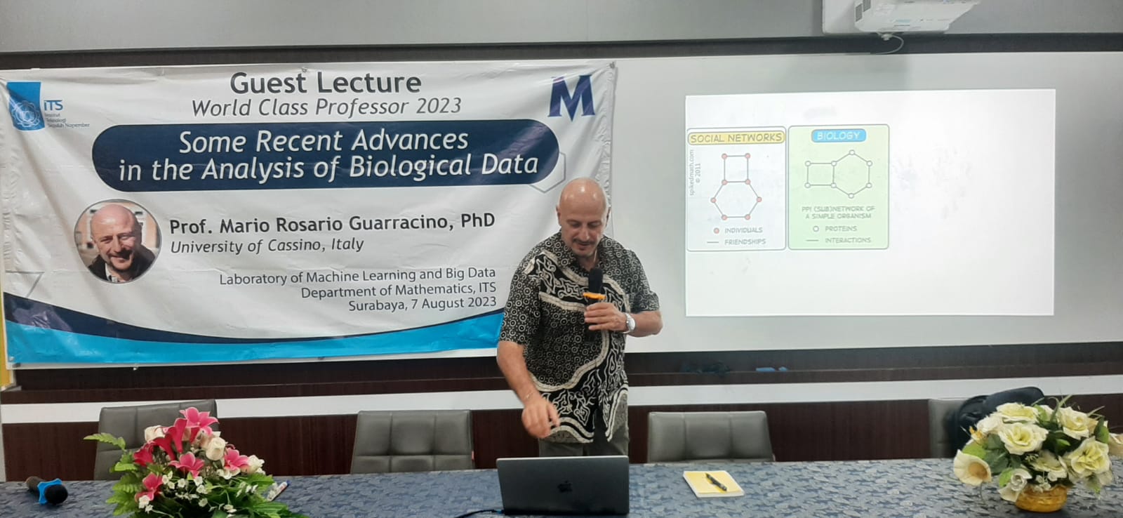 Surabaya 7 Agustus 2023, Departemen Matematika-ITS menyelenggarakan Guest Lecture yang menampilkan topik menarik “Some Recent Advances in the Analysis of Biological Data.” Acara ini menghadirkan pembicara internasional, Prof. Mario Rosario Guarracino, Ph.D dari University of Cassino, Italy. Kegiatan dilaksanakan secara hybrid yang dihadiri oleh dosen dan mahasiswa dari berbagai program studi terkait.