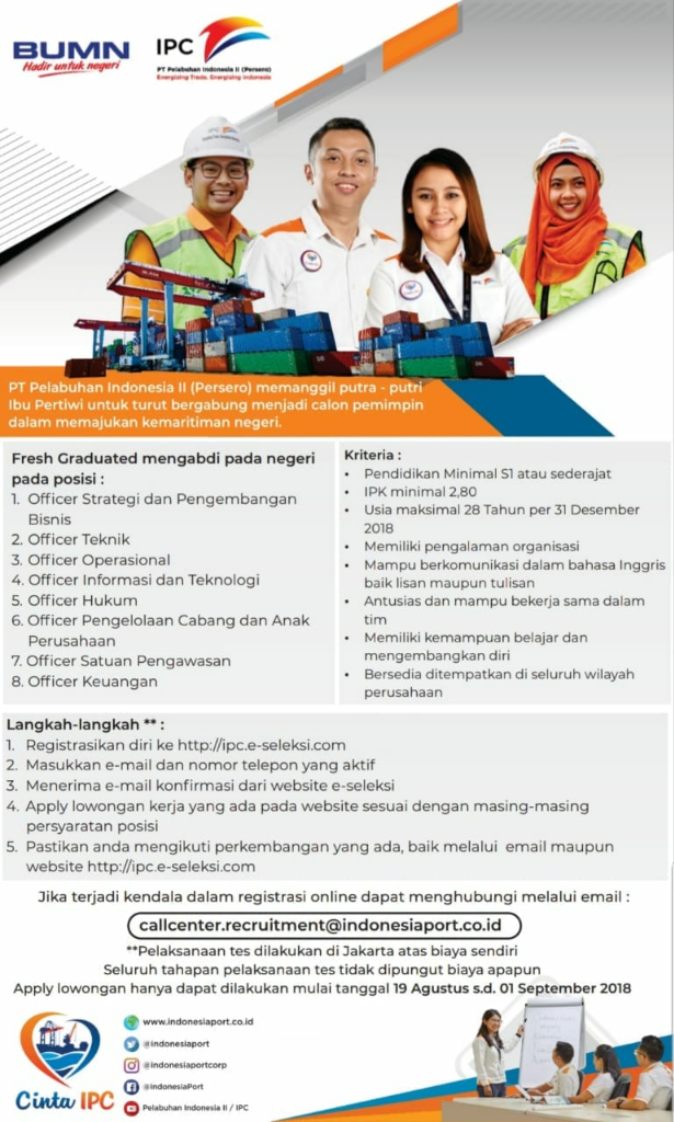PT. Pelabuhan indonesia II memanggil putra-putri ibu pertiwi untuk turut bergabung menjadi calon pemimpin dalam memajukan kemaritikan dalam negeri.
