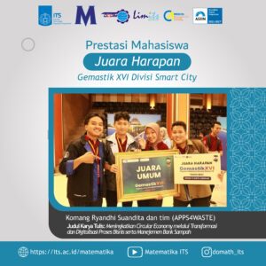 Kabar membanggakan kembali datang dari Departemen Matematika Institut Teknologi Sepuluh Nopember (ITS). Mahasiswa kami bersama tim yang tergabung dalam