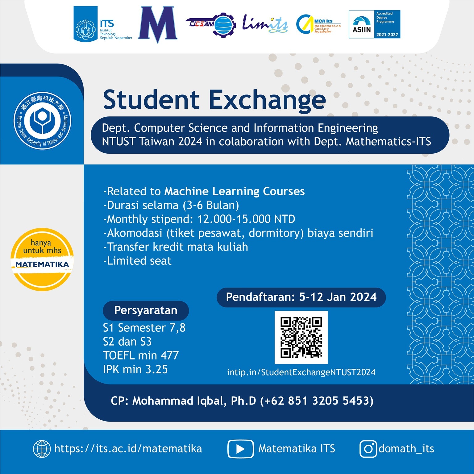 Student Exchange Dept. Computer Science and Information Engineering NTUST Taiwan 2024 in colaboration with Dept. Mathematics-ITS