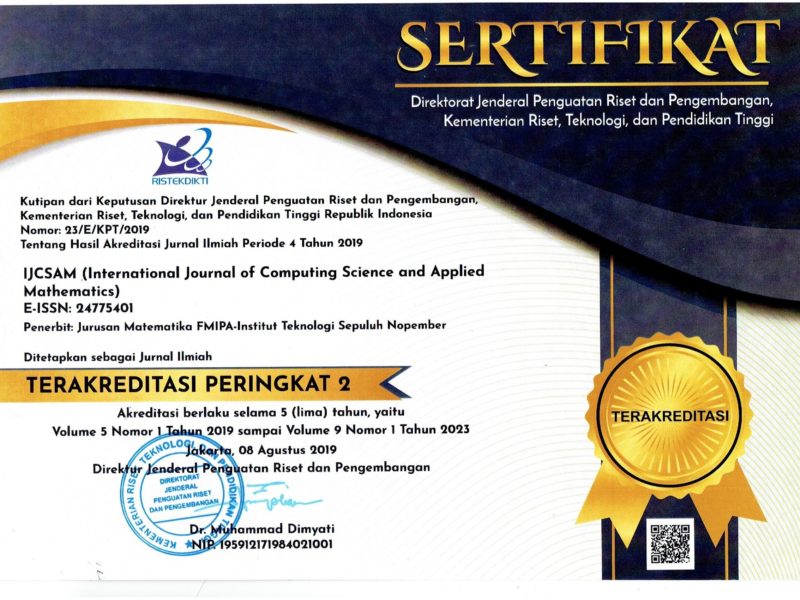 The journal is classified into national’s 2nd highest cluster for reputable journal in Indonesia No SK: 23/E/KPT/2019 Started from: Vol. 5 No. 1 Year 2019 Until: Vol. 9 No. 1 Year 2023