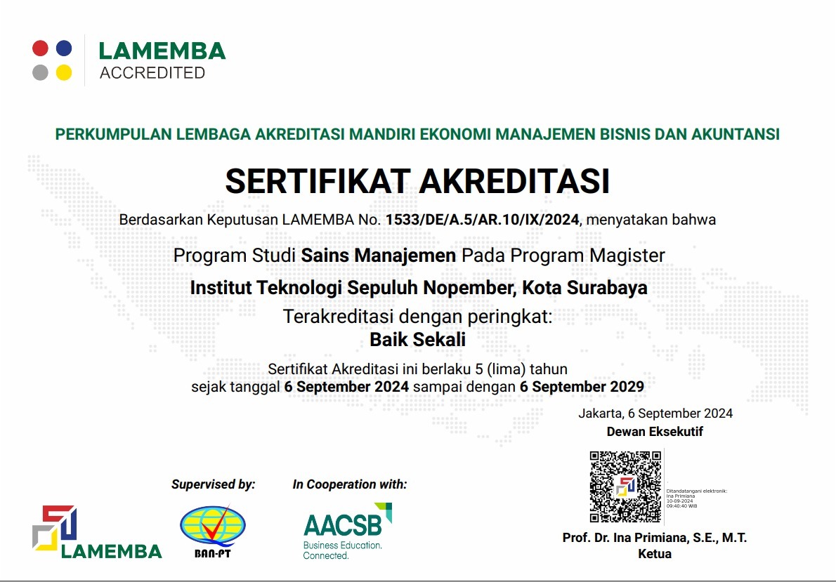 Magister Science in Management has been accredited “EXCELLENT” by LAMEMBA (The Institute of Accreditation for Economics, Management, Business, and Accounting Programs) in 2024.