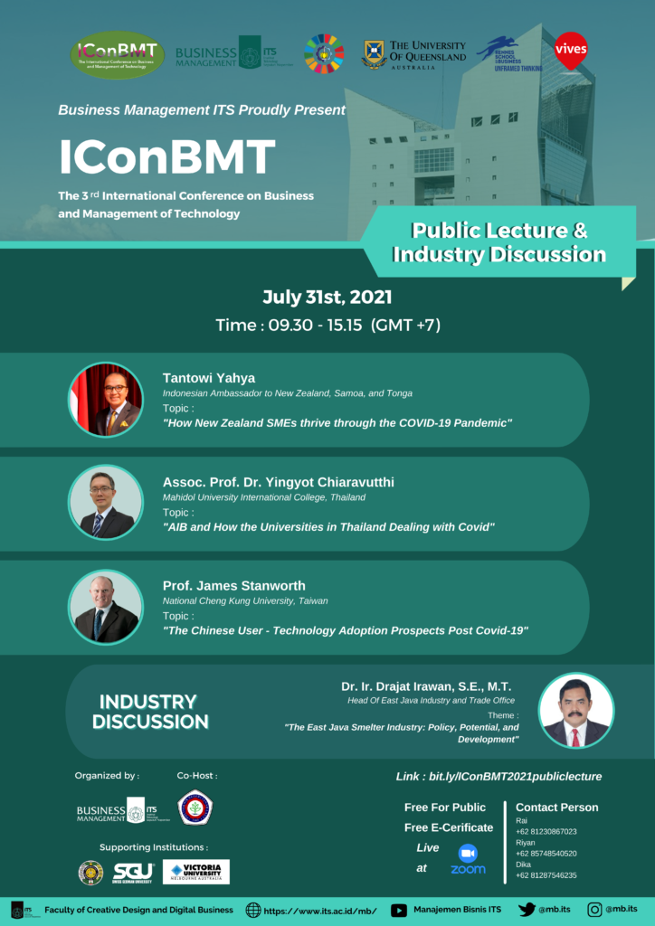 Join our 3rd International Conference on Business and Management of Technology Public Lectures and Industry Discussion :