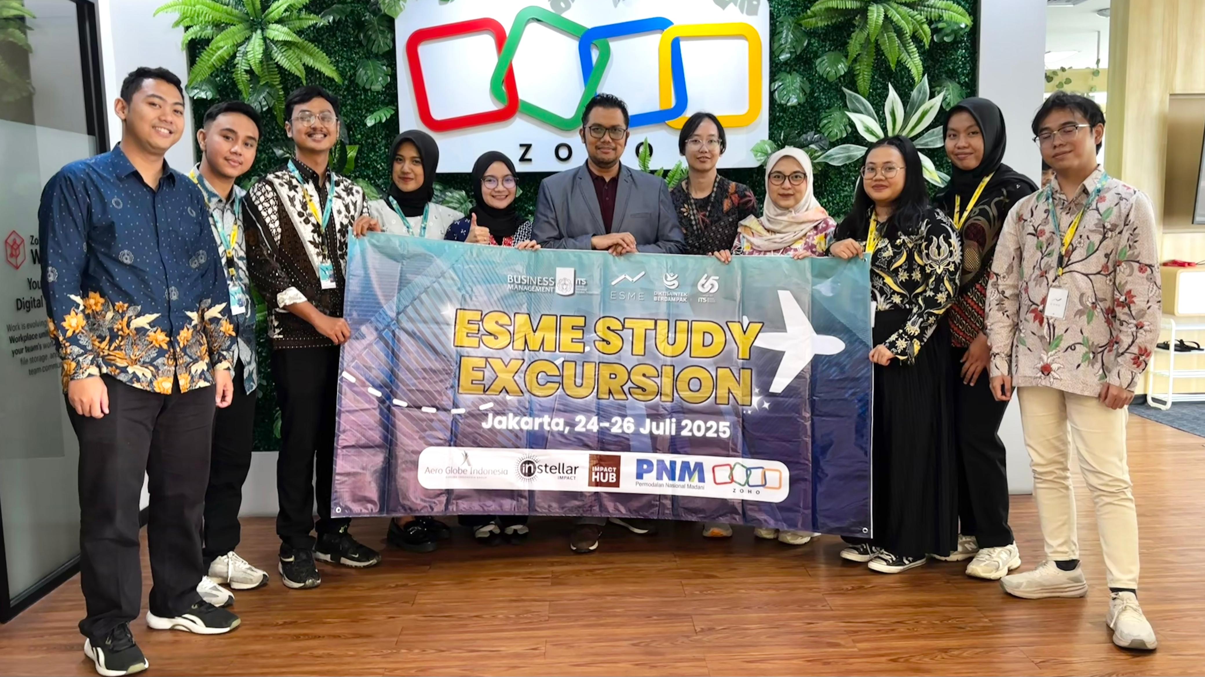JAKARTA, MB ITS – The Entrepreneurship and Small Medium Enterprises (ESME) Laboratory, Department of Business Management ITS, held a study excursion to Jakarta on July 24–26, 2025. This excursion aimed to enhance students’ insight and experience in the social entrepreneurship ecosystem through direct visits to various companies, startups, and business development institutions. The excursion was attended by lecturers and seven ESME laboratory assistant students. Over the three days, the group visited various strategic institutions such as Impact Hub Jakarta, Instellar, PT Permodalan Nasional Madani (PNM), ZOHO Indonesia, and PT Aero Globe Indonesia (part of the Garuda Indonesia Group).