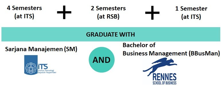 Mahasiswa akan menempuh studi selama empat semester di ITS, diikuti dengan studi selama dua semester di RSB dan kemudian kembali ke ITS selama satu semester untuk menyelesaikan tugas akhir. Setelah selesai, mahasiswa akan mendapatkan dua gelar sekaligus yaitu Sarjana Manajemen (SM) dari ITS dan Bachelor of Business Management (BBusMan) dari RSB.