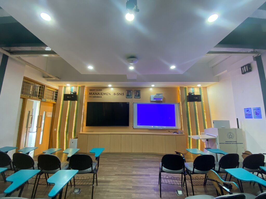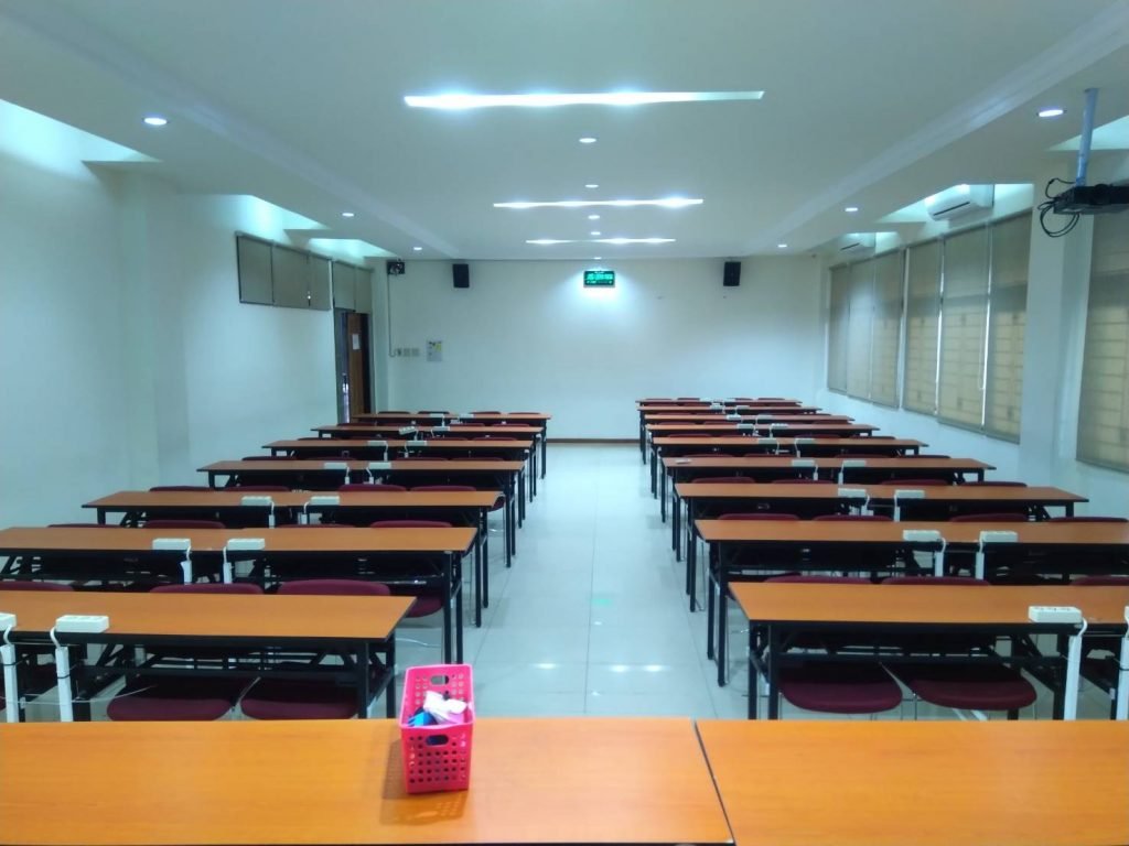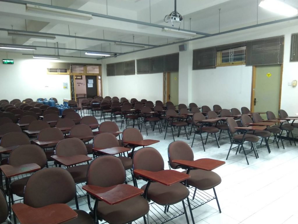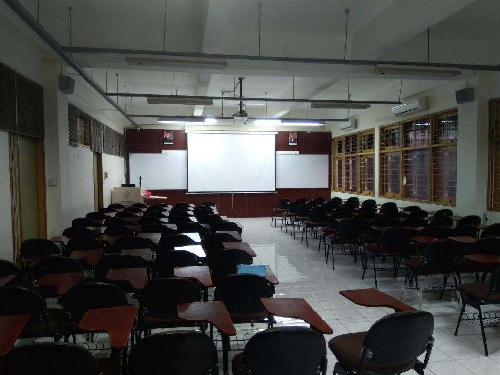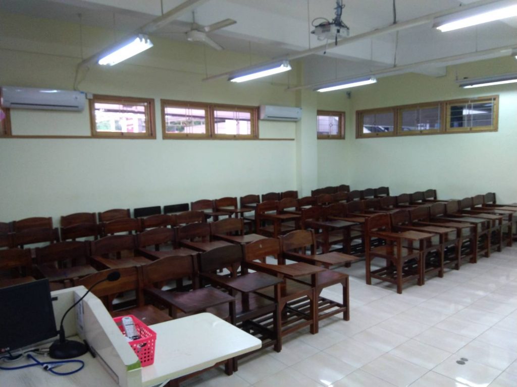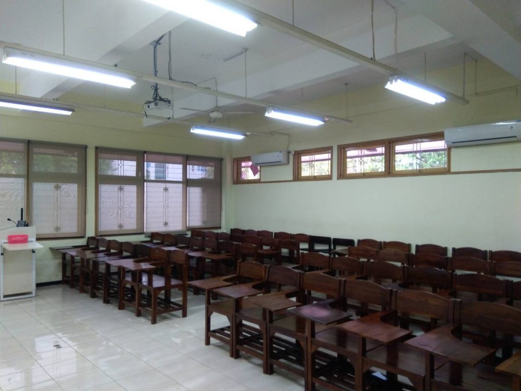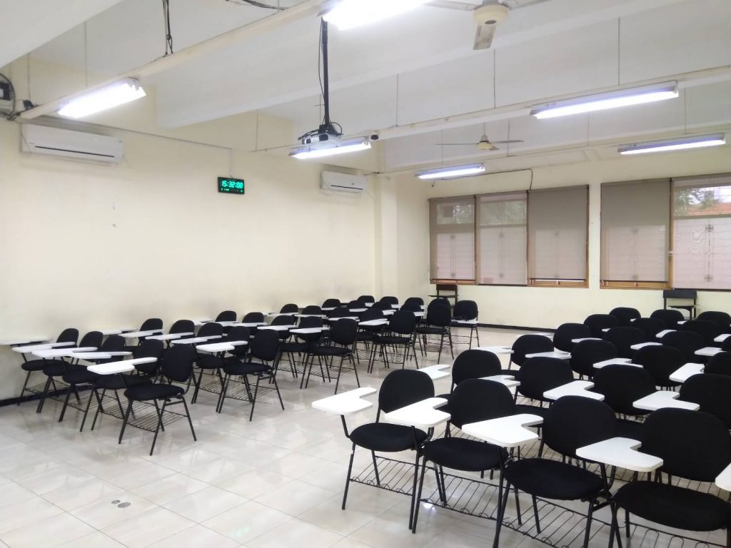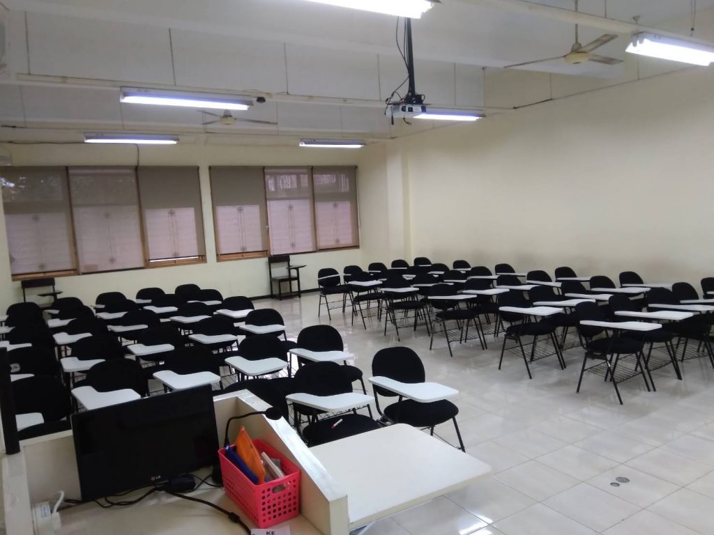 Ruang kuliah memiliki fasilitas yang memadai, dimana setiap dilengkapi dengan AC, LCD Projector, High-Speed Internet, Aver kamera, dan perlengkapan modern lainnya sehingga kegiatan belajar-mengajar menjadi lebih nyaman.