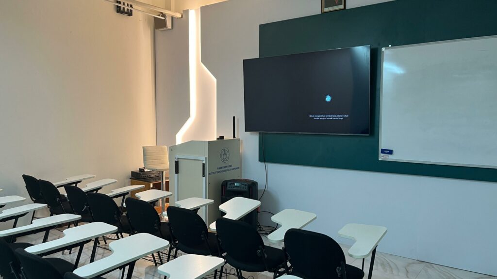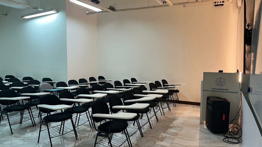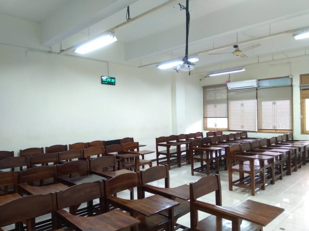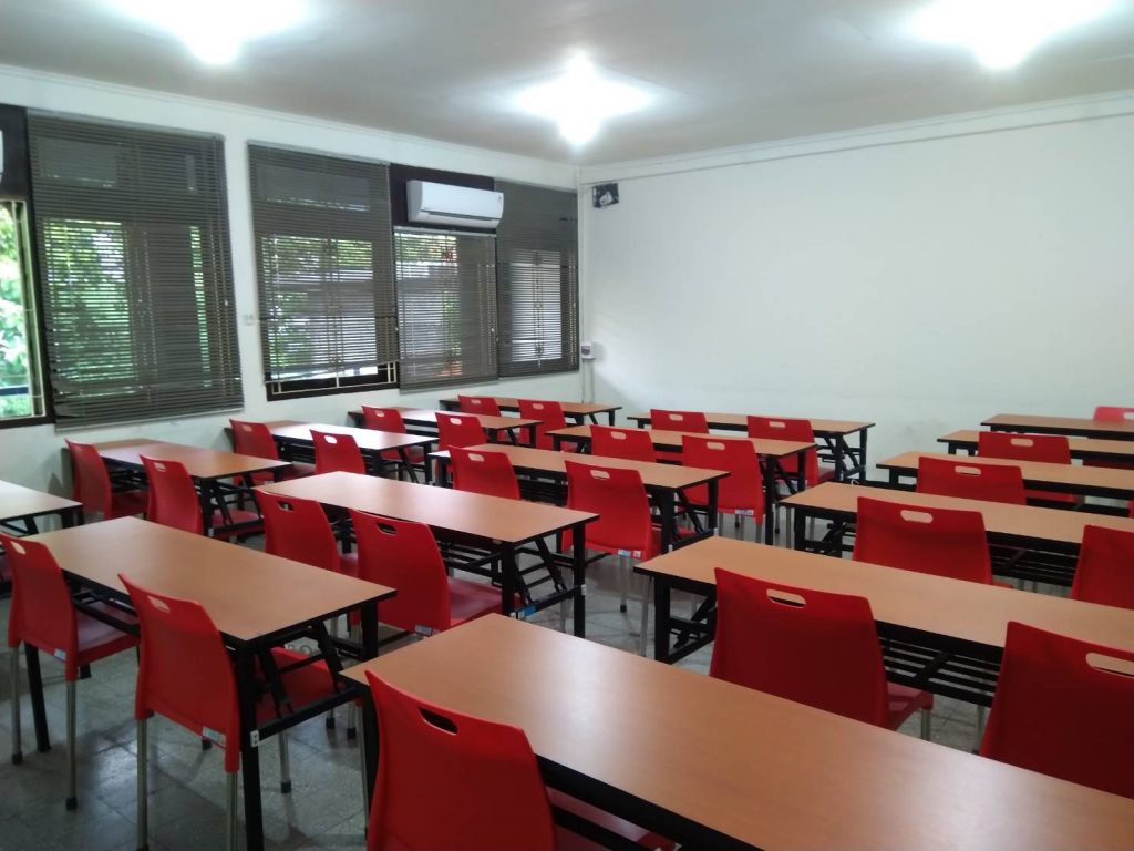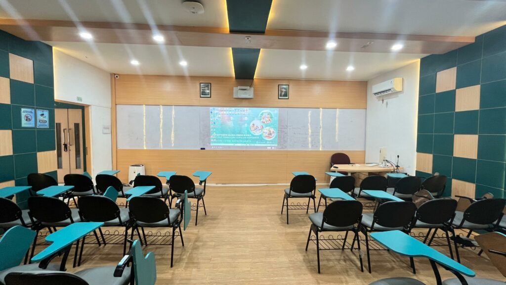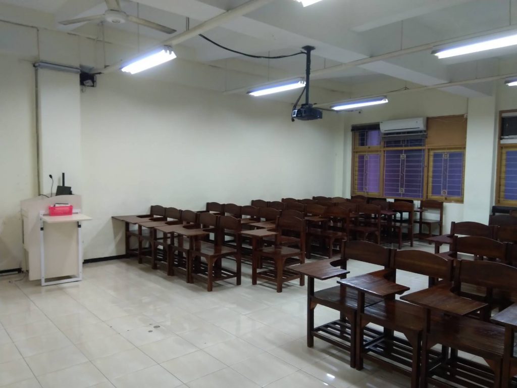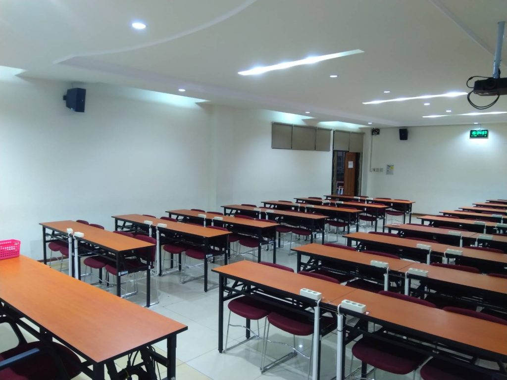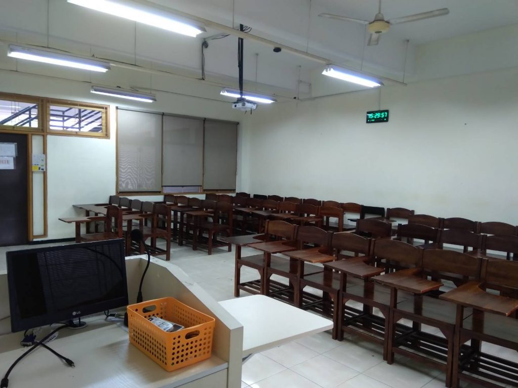 Ruang kuliah memiliki fasilitas yang memadai, dimana setiap dilengkapi dengan AC, LCD Projector, High-Speed Internet, Aver kamera, dan perlengkapan modern lainnya sehingga kegiatan belajar-mengajar menjadi lebih nyaman.